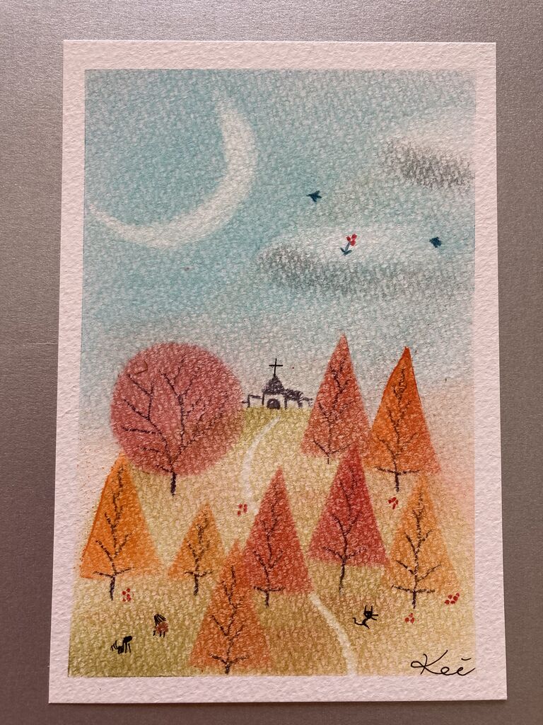 秋のパステル画。