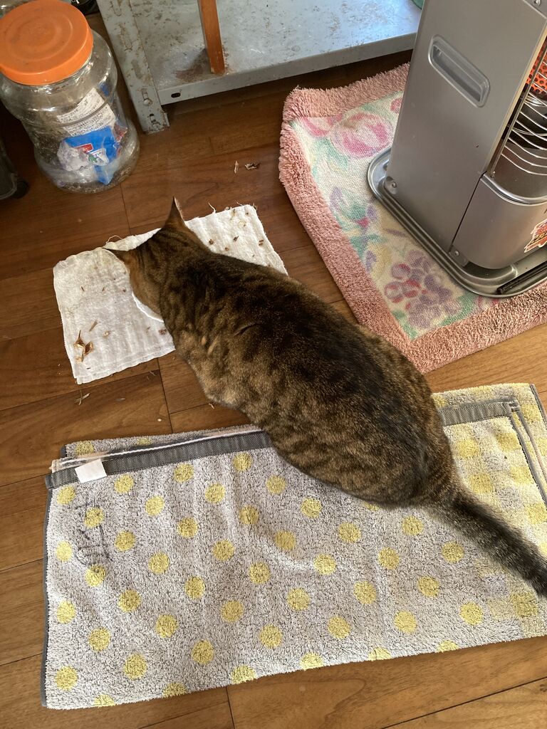魚もらってバクバク。