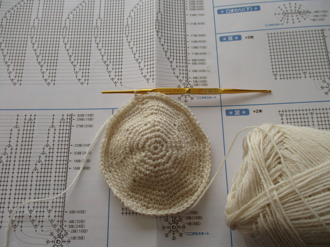 クチュリエ着せ替えうさぎを編みはじめました。