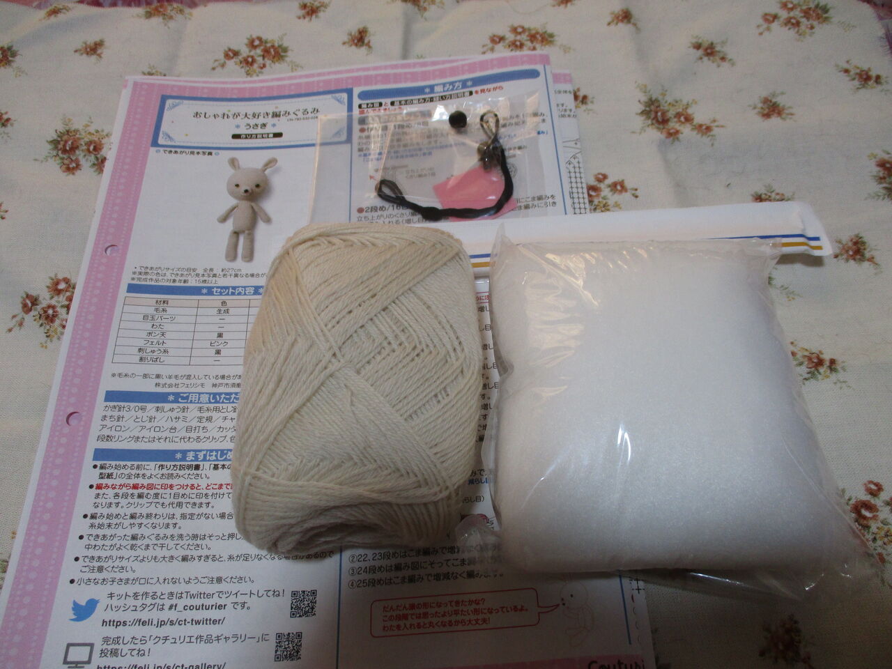 着せ替えをする本体うさぎちゃんのあみぐるみキット。