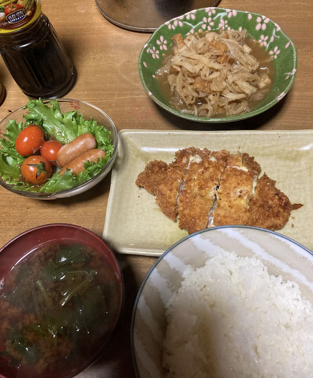 サラダ🥗とほうれん草の味噌汁。