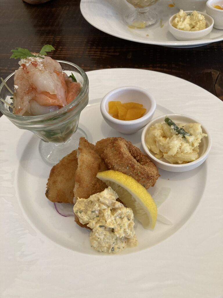 ホタテ、エビ、サーモンのカルパッチョと